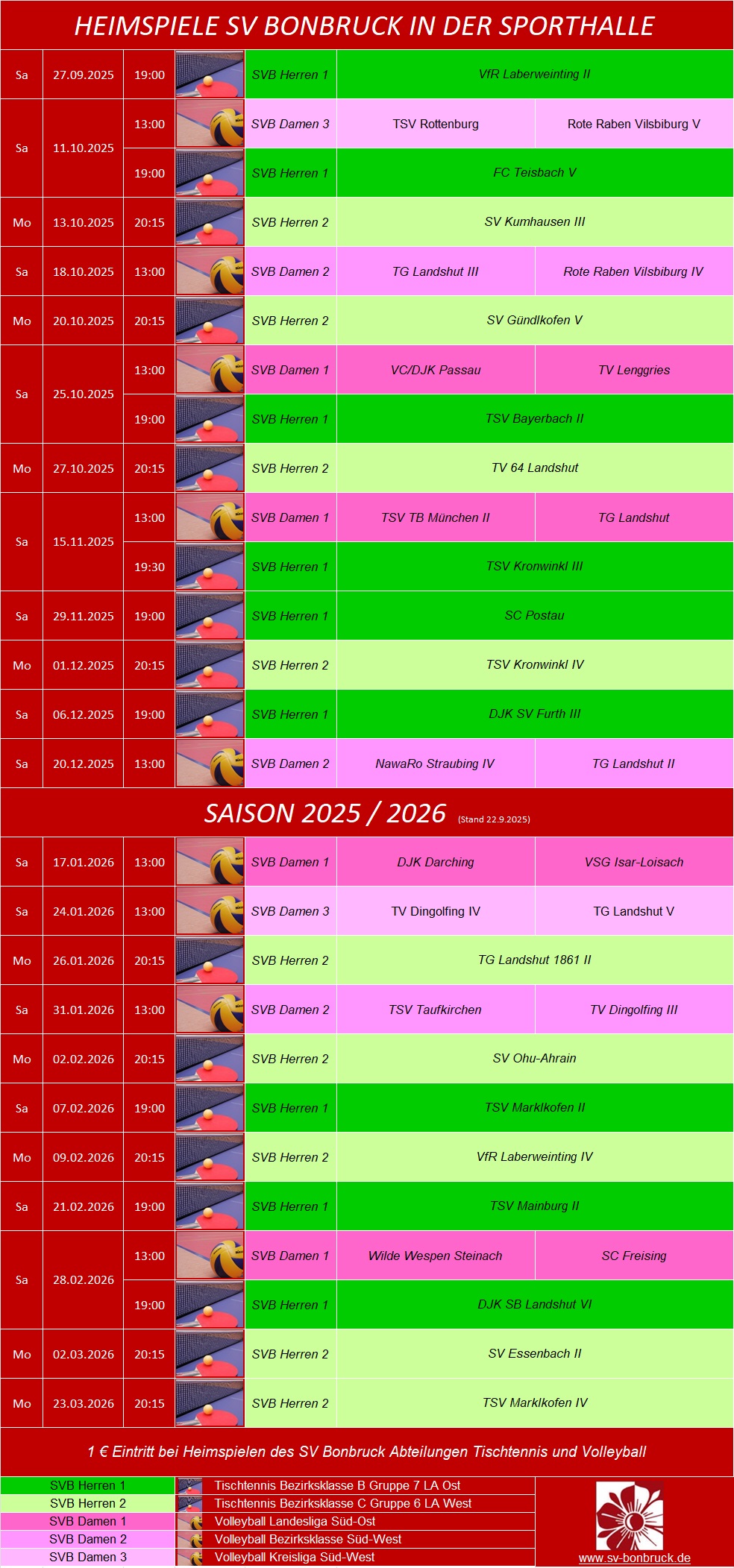 Heimspiele Tischtennis und Volley